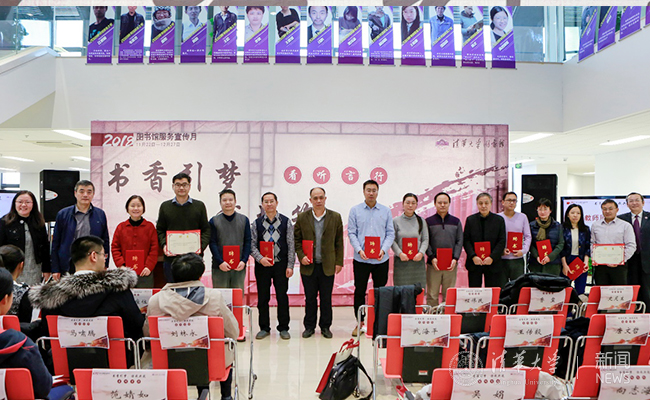 会上还为全国首届“图书馆杯主题海报创意设计大赛”中荣获三等奖的美术学院研究生杨虹颁发获奖证书。本次大赛由中国图书馆学会阅读推广委员会主办,杨虹作品《新·书——新时代 新阅读 新未来》由清华大学图书馆推选参赛,作品指导教师陈楠荣获组委会颁发的“优秀指导教师奖”。会上还宣布了随手拍“最美图书馆,最美读者,最美馆员”线上摄影比赛获奖名单。