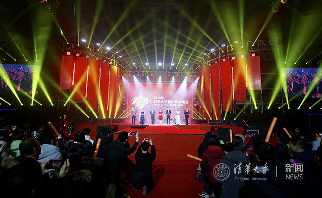2019年清华大学新年联欢晚会通过清华大学电视台进行全球直播,来自世界各地的清华校友、关心支持清华大学的各界人士和现场观众同步观看了晚会,分享从清华园传递出的喜悦氛围。