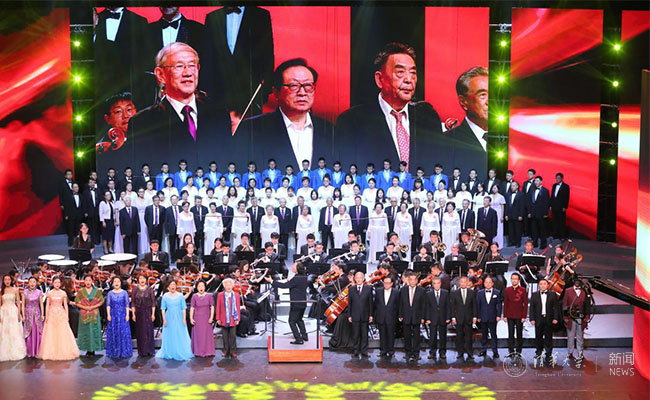 晚会在气势磅礴的《祖国颂》和振奋人心的《清华大学校歌》声中接近尾声。学生艺术团合唱队、交响乐队和各年代的艺术团团友同台献唱,书写学生艺术团新的历史华章,表达了艺术团团友及全体在校团员们对祖国的挚爱之情,以时代的强音讴歌伟大的中国梦。