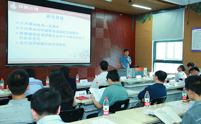 在开幕式上,与会师生就“一带一路”倡议和“林枫计划”首次海外实践的调研成果进行了充分探讨。今年年初,“林枫计划”首次开展海外社会实践,12名学员赴俄罗斯围绕“当代俄罗斯青年关于十月革命的历史认知研究”和“‘一带一盟’的前景与挑战——中观机制对接的视角”开展调研,工物系2014级本科生李岩、土木系2014级本科生潘胜杰展示了小组研究成果。马克思主义学院教授、“林枫计划”导师王传利,中俄战略合作研究所执行所长王奇,党委学生部副部长余潇潇作为点评嘉宾,分享了对俄罗斯历史、经济、文化和中俄合作前景的理解。