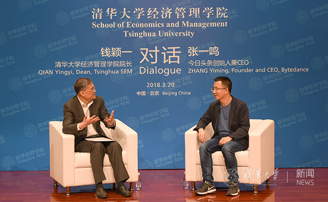 清华新闻网3月27日电 3月20日晚,清华经管学院院长钱颖一教授对话今日头条创始人兼首席执行官张一鸣活动在经管学院举行。