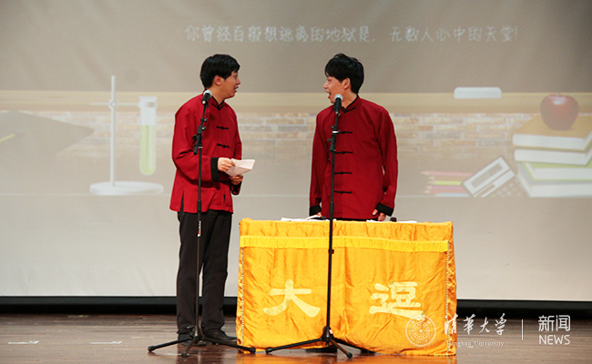 清华新闻网3月13日电(通讯员 李卓 李卓然)3月11日晚,“开学啦—清乐华章大逗相声专场”在大礼堂举办。清华大学新闻与传播学院2016届校友、相声演员李寅飞携大逗相声团队,与清华大学曲艺队一起为大家献上了一场精彩纷呈的相声剧表演。