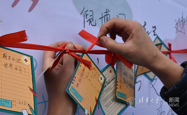 本次献血活动围绕“愿望”和“志愿奉献”两个关键词,进行了形式多样的宣传并准备了丰富的纪念品。献血现场志愿者积极服务各位献血者,确保此次献血的顺利进行。每位成功献血的同学收到清华学生红会设计的红十字围巾以及献血纪念版作业纸,在寒冷的冬天因为奉献而感到温暖和踏实。献血者还可以在清华大学红十字会学生分会设计制作的愿望卡片上写上自己的岁末愿望,并系在签名墙上,在年终完成自己的愿望清单。有同学写道“希望血液不再是稀缺品”,也有同学写道“早日实现‘两个一百年’奋斗目标”,形形色色的愿望里蕴含着“爱国奉献、追求卓越”的清华人精神。