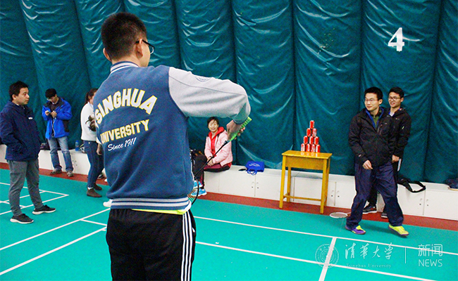 除了常规赛程,现场还设有“击倒金字塔”“海底捞月”“你发我接”等趣味项目,并准备了精美奖品,让现场观赛的同学们也能拿起球拍,参与到比赛中来。