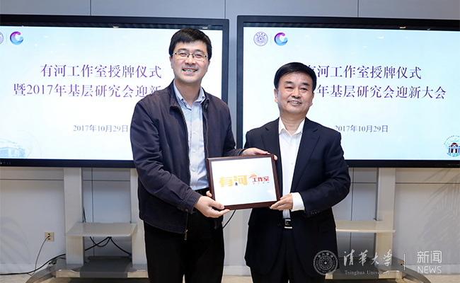 清华新闻网10月31日电 (通讯员 顾宇轩 陶敏珍)10月29日晚,清华大学学生职业发展指导中心有河工作室授牌仪式暨2017-2018学年学生基层公共部门发展研究会(简称基层研究会)迎新大会举办。校党委副书记过勇为工作室授牌,原河北省委副秘书长、有河工作室负责人王有河出席,110余名基层研究会会员和在校学生参加活动。