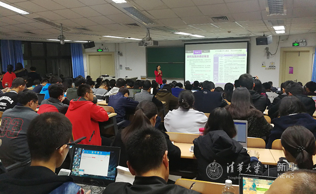 清华新闻网10月24日电 (通讯员 辛冠男)10月19日晚,清华大学研究生先进集体经验分享会在第五教学楼举行。来自各院系2017级研究生新生集体的党支部书记、团支部书记、班长等骨干近200人参加分享会。