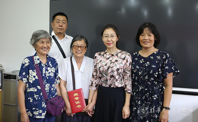 清华新闻网8月22日电(通讯员 杨帆 赵颖)5月31日,清华大学1961届机械系程娴学长在看到《清华校友通讯》上有关励学金的报道后,从沈阳专程来到校友总会,代表她和女儿董昱、儿子董旻捐赠100万元人民币。8月18日,程娴学长和儿子董旻来到校友总会完成协议签署,校友总会副秘书长崔剑、机械系党委副书记冯涓接待了母子二人,代表学校感谢程娴学长一家的捐赠,并向程学长颁发了捐赠证书。