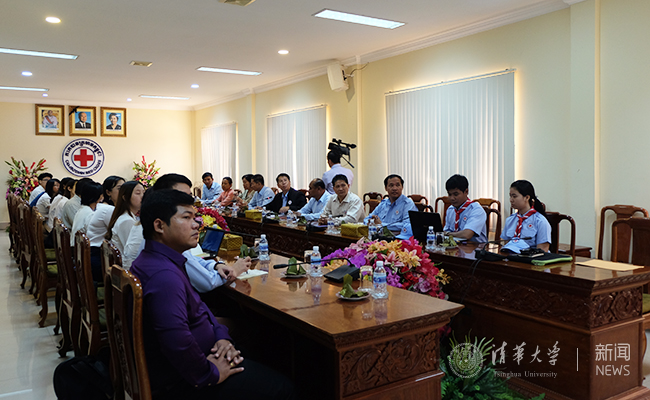 带队教师医学院教授程峰介绍了清华大学红十字会与本次实践支队的情况。学生红会会长、人文学院本科生马欣欣介绍了学生红会的活动,包括无偿献血、急救培训、防艾教育及同伴教育等活动。随后,支队成员就相关话题与柬埔寨红十字会官员进行讨论。