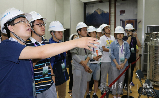 锦屏聚高山,地下溯深源。7月11日,同学们首先到达锦屏地下实验室一期工程处,带队老师胡庆东为大家介绍暗物质探测实验原理和实验进展,带领大家参观锦屏一期实验室的实验装置。随后,大家来到锦屏二期实验室详细了解即将安装的探测器及预期探测目标。胡庆东说:“目前锦屏一期实验室内的中国暗物质实验探测器为1公斤高纯锗探测器,已经取得了国际领先的实验成果;锦屏二期实验室将使用吨量级的高纯锗阵列探测器,将同时开展暗物质和无中微子双贝塔衰变研究。”