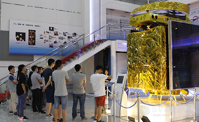 清华机械系实践支队在航天展厅聆听通信卫星历史。朱垣晔 摄