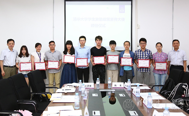 十名同学获聘为“清华大学学生资助政策宣传大使”。 许德刚 摄