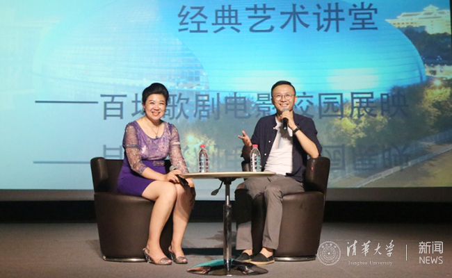 清华新闻网6月6日电 6月1日下午,国家大剧院 “高雅艺术进校园——百场歌剧电影进校园”活动再次走进清华,由张艺谋执导的新编京剧《天下归心》在大礼堂展映。剧中公子吕扮演者、国家京剧院著名丑行演员徐孟珂和颍母扮演者、北京京剧院的著名青年老旦演员康静来到现场,与观众分享演出过程中精彩故事,康静还当场演唱了剧中重要唱段,引来台下阵阵掌声。艺术教育中心主任赵洪对两位嘉宾的到来表示欢迎,对国家大剧院高雅艺术进清华活动表示衷心感谢。