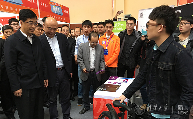 在“创青春”竞赛期间,共青团中央书记处第一书记秦宜智也来到现场参观了清华“轻客智能科技”展位,并对该项目给予了高度评价。团中央书记处书记傅振邦也一同参观。
