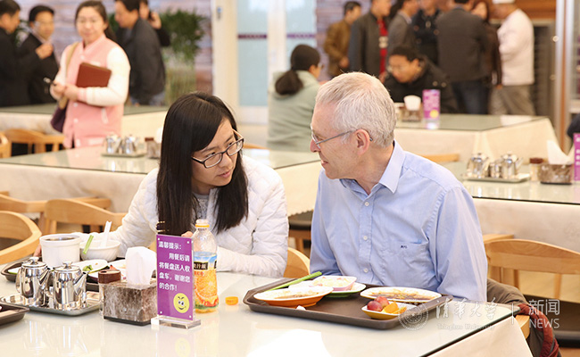 清华大学燃烧能源中心访问教授、美国康奈尔大学教授米歇尔,比较了清芬园教师餐厅和国外大学的“教师俱乐部”,认为清芬园教师餐厅的设计现代化,开放式的空间也让人更舒适。燃烧能源中心徐海涛、任祝寅、杨斌三位教师表示,教师餐厅的就餐环境舒适宽松,为校内不同专业教师提供了学科间互动沟通和学术交流的空间。