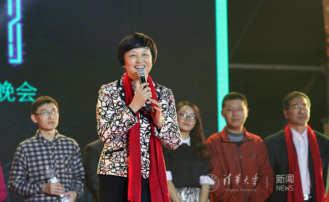 在新年钟声敲响之际,校长邱勇、校党委书记陈旭分别致辞。邱勇说,在辞旧迎新之际,感谢所有的老师和同学,你们的理解和支持使清华大学未来会有更好的发展;2016年就要来临了,我们祝愿所有的清华校友身体健康,祝愿所有的清华女生在104岁的时候,像杨绛学长一样健康美丽,祝全体清华师生新年快乐,万事如意。陈旭也在晚会现场给大家带来了祝福,她引用习近平主席刚刚发表的新年贺词中“只要坚持,梦想总是可以实现的”,“前景令人鼓舞、催人奋进,但幸福不会从天而降”等话语,强调“我们都是清华人”,勉励清华师生、校友一起努力,为学校、为国家做出更大的贡献。