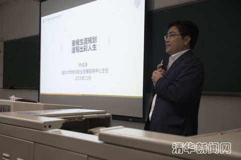 清华大学学生职业发展指导中心主任林成涛在讲座中。