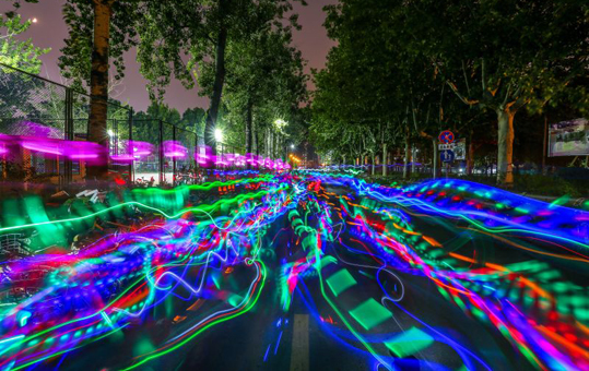 长曝光下的荧光夜跑。