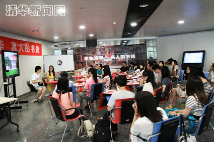 清华大学“学在清华•真人图书馆”系列活动由清华大学国家大学生文化素质教育基地、清华大学研究生会、清华大学人文社科图书馆联合主办。该活动改变了以往传统的图书馆阅读模式,以一种真人面对面沟通的形式让读者来完成“图书”的阅读,从而实现与“真人图书”零距离的互动沟通,以期让读者通过“借阅”“真人图书”,领略别样人生。