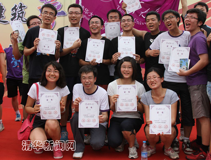 清华新闻网7月15日电 (研通社记者 李德珺 周奕杉)又是一年毕业时。清华大学的毕业生同学们在即将踏上新征程之际,以清华最传统的健身方式、最熟悉的体育活动——长跑,在清华留下了毕业前的足迹。7月13日下午, “行健筑梦·人生启航”——2013年清华大学毕业长跑在校园里举行。校长陈吉宁、校党委书记胡和平通过为此次活动的毕业纪念衫签名,表达了他们对广大毕业生的良好祝愿。校党委副书记韩景阳、史宗恺出席活动并领跑,来自30多个院系的千余名师生参与了长跑活动。清华运动健将,著名的“眼镜飞人”胡凯同学担任本次毕业长跑的旗手。