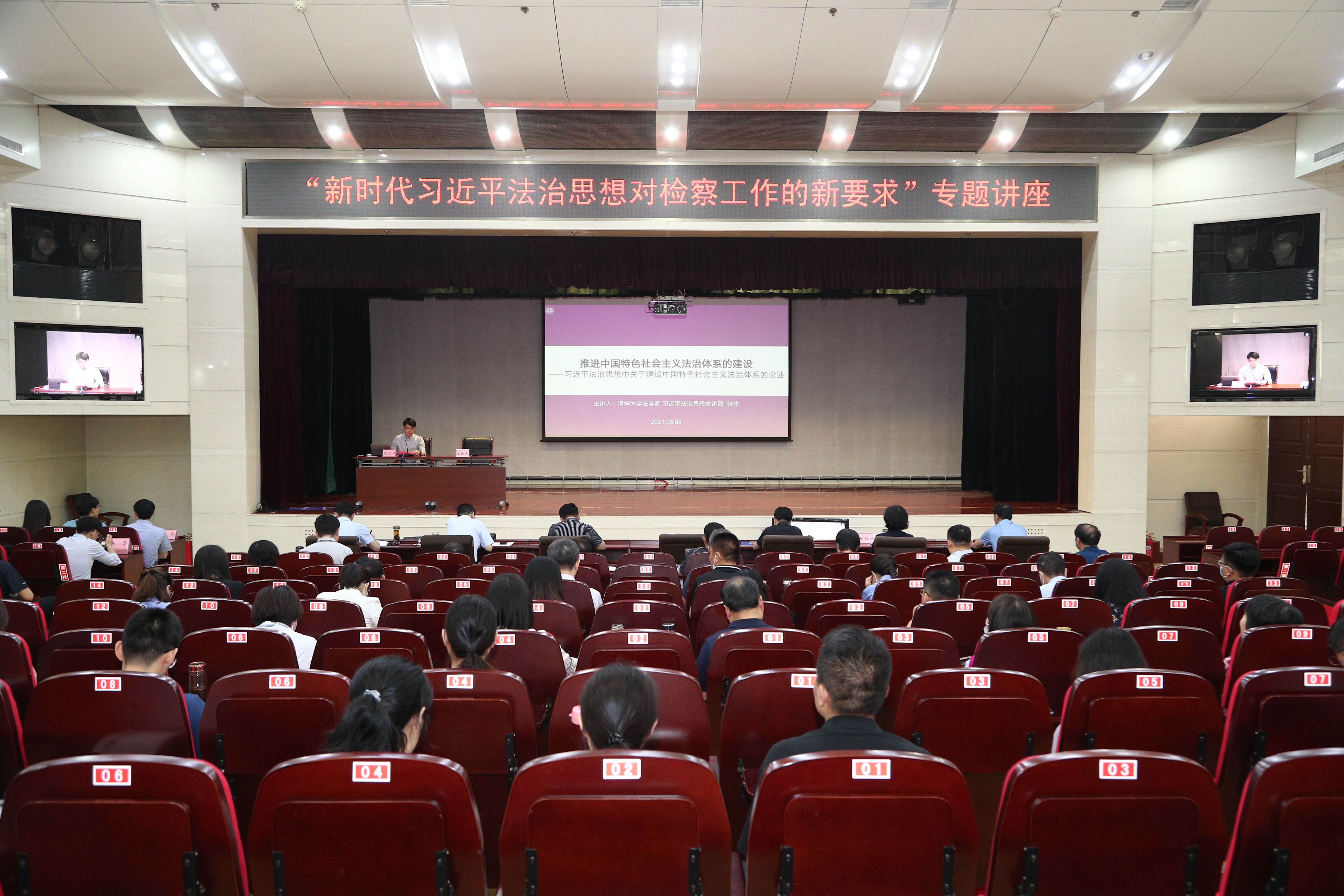 清华新闻网6月10日电 6月8日,清华大学法学院习近平法治思想宣讲团在法学院党委副书记陈杭平、法学院研工组组长汪洋的带领下走进山东省泰安市人民检察院,开展“习近平法治思想全国巡回宣讲”首场活动。活动采取线上线下相结合的方式,泰安市人民检察院为主会场,泰安市各区(县)检察院为分会场。泰安市人民检察院领导班子、泰安市各区(县)检察干警共约600余人聆听了宣讲。活动由泰安市人民检察院党组成员、政治部主任尚晓兵主持。