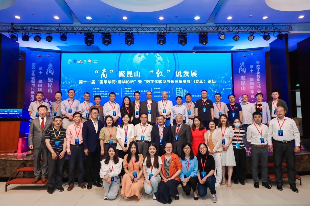清华新闻网6月22日电 6月18日上午,由清华大学华商研究中心、中国华侨华人研究所、昆山市委统战部等单位联合举办的第十一届“国际华商·清华论坛”暨“数字化转型与长三角发展”论坛在江苏昆山顺利开幕。苏州市委统战部、市侨联领导,昆山市委、市政府领导,昆山市委统战部、市侨联、相关部门及各区镇领导,海内外专家、学者、优秀华商代表,江苏省、上海市、浙江省、苏州市侨商会代表,昆山海联会、欧美同学会、侨商会代表等共计280余位嘉宾出席了论坛开幕式。
