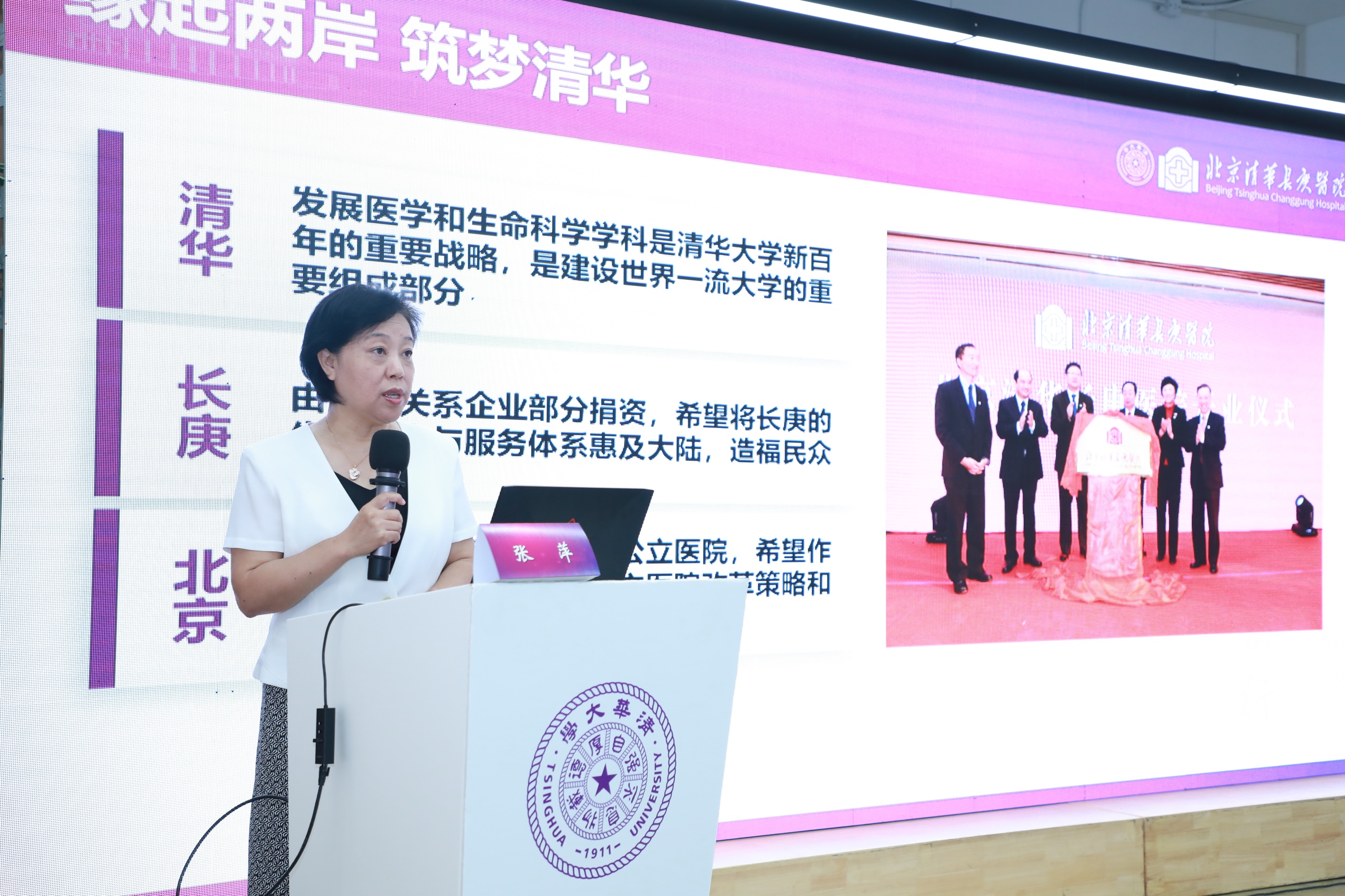 张萍介绍了北京清华长庚医院的建设历程,从医疗服务、人才培养、科学研究、医院治理、公益服务五个方面详细介绍了北京清华长庚医院开业运营六年来取得成绩和成果。张萍表示,北京清华长庚医院开展国内外领先的医疗技术百余项,创下多项世界记录,以先进技术和优质服务成功救治了大批来自海内外的复杂危重病患,综合水平进入全国三级公立医院绩效考核前百位。作为清华大学的主体教学医院,北京清华长庚医院充分借鉴台湾长庚纪念医院和国际顶尖学术型医院的先进医学教育理念和成功经验,创新医学教育模式和方法,建立完善的住院医师-专科医师一体化培训体系,启动了基于器官系统的临床医学MD教育体系建设,人才培养质量名列北京市前茅。