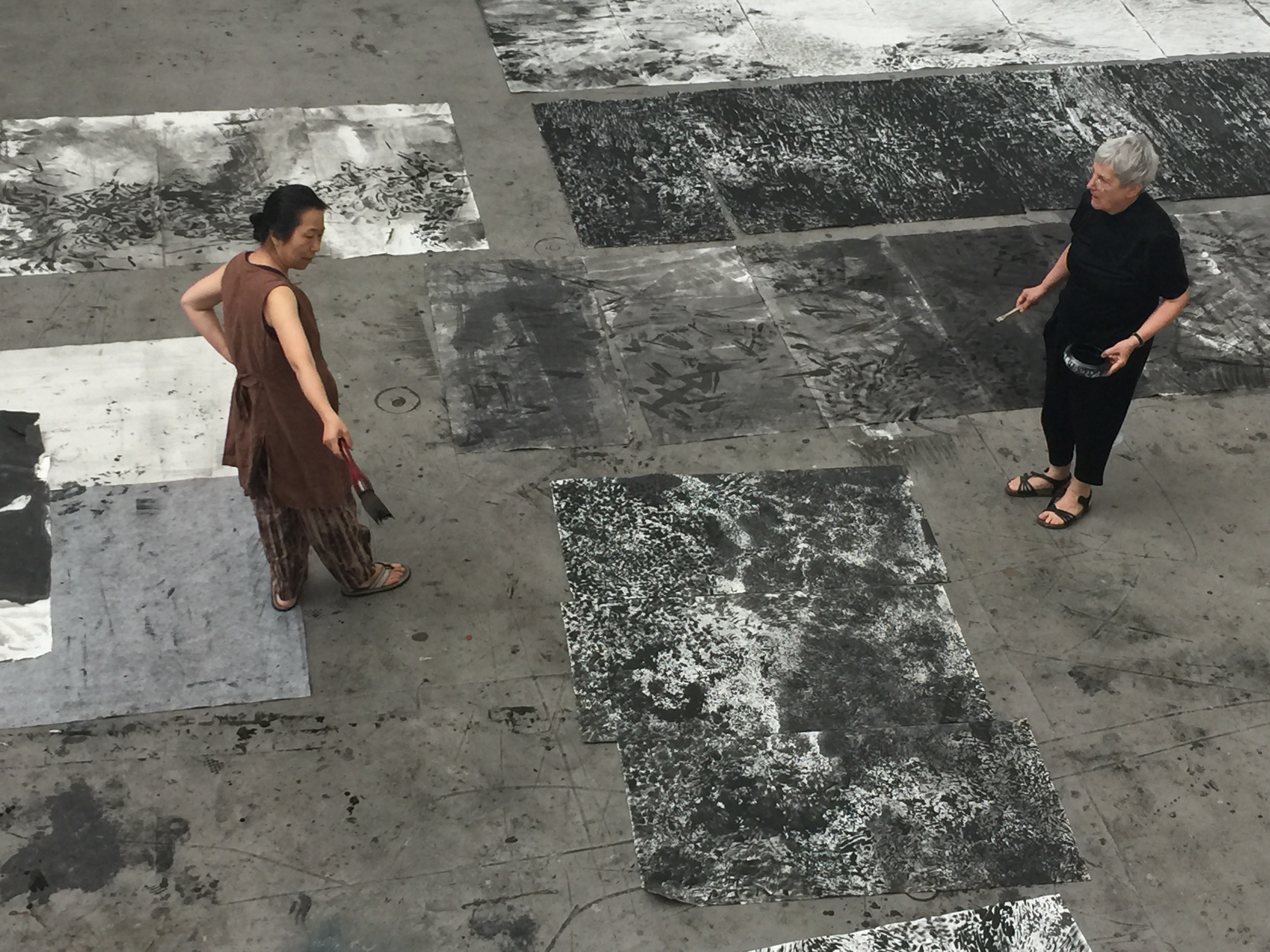 姜祖青与佛朗斯·姆瑞的合作始于2017年6月。“纸上”合作的理念是她们共同考察安徽省的造纸作坊时产生的。2019年,姜竹青赴瑞士、意大利,与佛朗斯·姆瑞一起,以“纸上”的主题进行创作。这是东、西方艺术语言之间不寻常的相遇,发掘了体验艺术的新可能性。