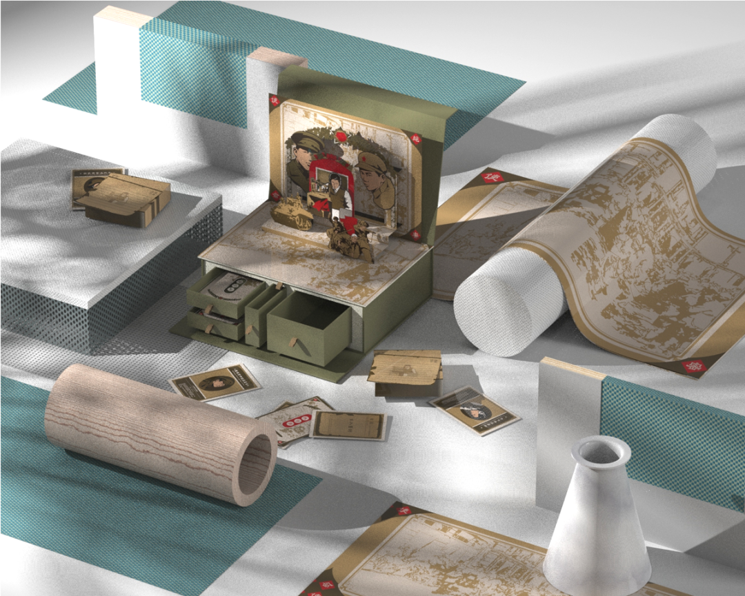 一本记载了百年历史名人的红色记忆,共四套,每一套的笔记本里选取了一位名人的家书,完整的家书藏在本子里,使用者可以通过使用一些辅助工具来寻找和发现他们,并产生阅读的兴趣。每封家书都感人至深,映射出革命家和无产阶级先锋战士的家国情怀,选取的家书分别来自无产阶级革命家夏明翰、革命烈士吉鸿昌、“两弹一星”元勋钱三强和王鹏。