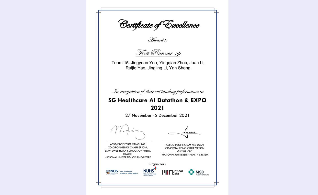 “医疗AI数据马拉松”自2018年起已成功举办三届,收到了来自NUHS、NUS、工业界、医疗保健行业、学术团体和其他机构的热烈响应。本届大赛,共有78支参赛队伍入围初赛,48支队伍晋级决赛,分别来自中国、日本、韩国、泰国、澳大利亚和巴西等国家的10余家研究机构。决赛邀请到来自麻省理工学院、哈佛大学、康奈尔大学、埃默里大学、新加坡国立大学等国际院校的20名专家担任导师、评委。经过激烈角逐,北京清华长庚医院推荐的由清华大学理工院系与心脏内科、呼吸与危重症医学科、皮肤科和耳鼻喉头颈外科临床医师组成的四支队伍中,耳鼻喉头颈外科代表队最终在48支决赛队伍中排名第二,获得“First Runner-up”亚军荣誉。