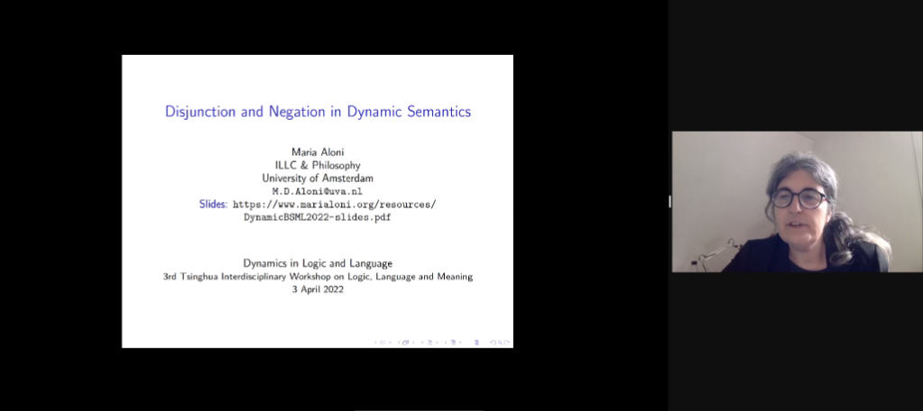 阿姆斯特丹大学教授阿洛尼(Maria Aloni)报告了她近期对自由选择推理的系列研究成果,介绍了能够解释自由选择现象的形式系统BSML。她表示,构建该系统的核心假设是人类认知中“否定空集”的倾向。