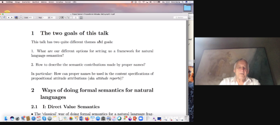 德克萨斯大学奥斯汀分校教授坎普(Hans Kamp)作题为“命题态度中的专名”的特邀报告。他介绍了一种有别于传统的直接赋值语义学的语义理论,称为“基于心智状态的对话表征理论”。