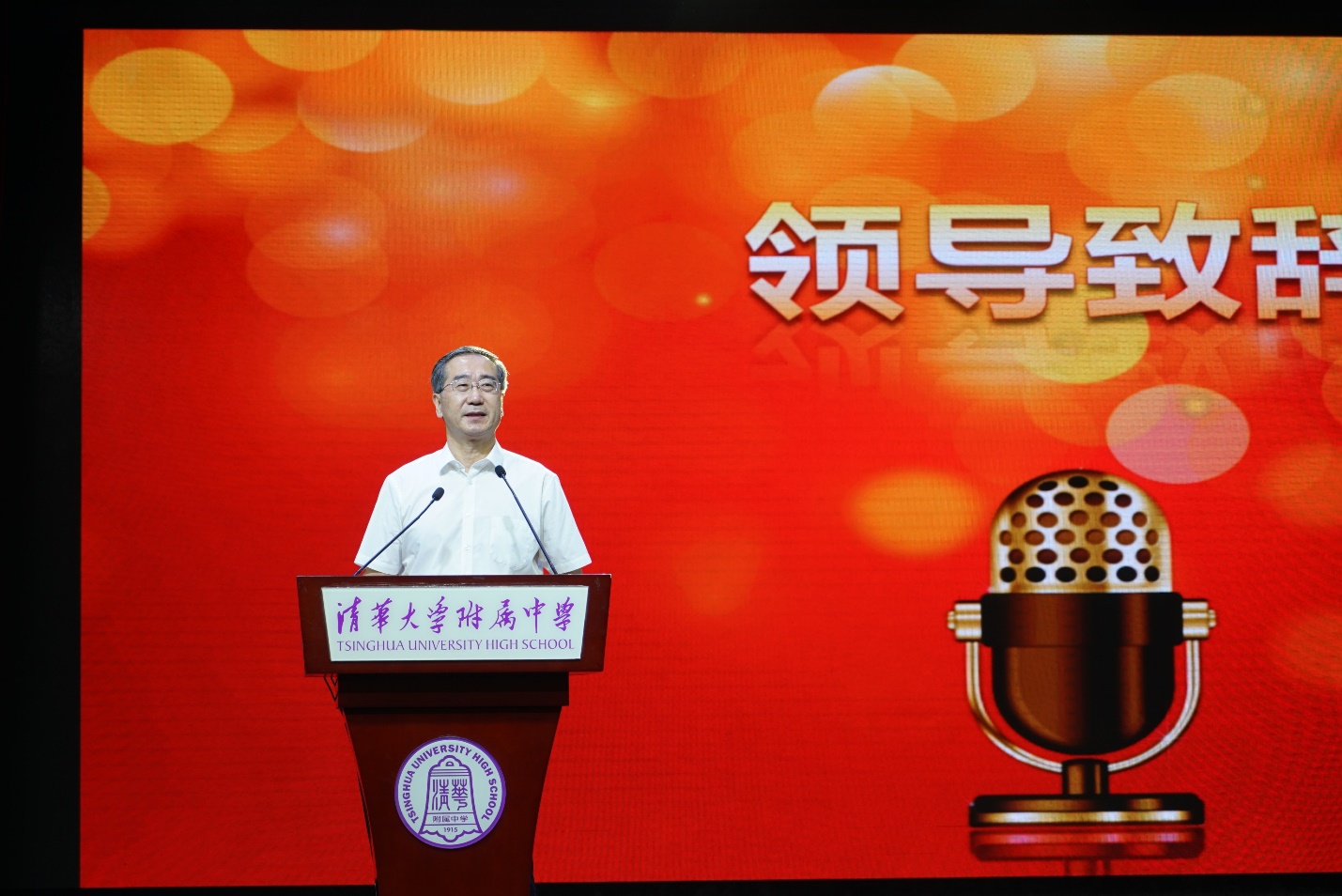 姜胜耀在致辞中代表清华大学向附中全体教职工表达节日的祝福。他指出,今年的教师节时间特殊、意义重大,再过不久,我们将喜迎党的二十大。这十年,全体“清华师者”牢记习近平总书记嘱托,不负时代使命、不负人民期望,坚持把立德树人作为根本任务,努力为党育人、为国育才。他希望附中的老师们继续传承“清华师者”爱党爱国、倾心育人、严谨治学的宝贵精神传统,以师者之信仰、师者之才学、师者之德行,为党育新人,为国育大才,努力成为扎根杏坛、仁爱奉献、崇德修身、潜心育人的“大先生”。