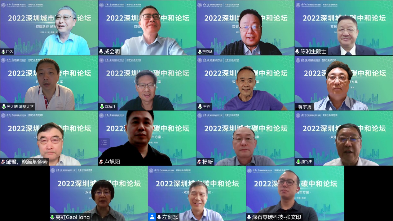 深圳市人大常委会副主任、深圳市科学技术协会主席蒋宇扬,中国工程院院士、清华大学碳中和研究院院长、深圳国际研究生院环境与生态研究院院长贺克斌,中国工程院院士、清华大学建筑节能研究中心主任江亿,中国科学院院士、中国科学院深圳先进技术研究院碳中和技术研究所所长成会明,中国工程院院士、深圳大学土木与交通工程学院院长陈湘生,能源基金会首席执行官兼中国区总裁邹骥,深圳市人大常委会城建环资工委副主任卢旭阳,万科集团创始人、万科公益基金会理事长王石,英国社会科学院院士、清华大学特聘教授关大博,日本工程院外籍院士、福州大学建筑与城乡规划学院院长、日本金泽大学教授沈振江,南方科技大学环境科学与工程学院院长、讲席教授杨新,深石零碳科技CEO张文印,清华大学深圳国际研究生院执行院长高虹,副院长康飞宇、左剑恶出席会议。相关领域的专家学者、高校师生、企事业代表等各界人士近500人线上参会,论坛通过多个学术会议平台同时直播,听众超过2.8万人次。论坛由左剑恶主持。