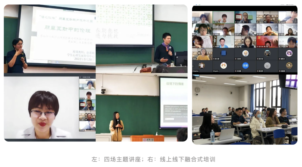 “清心伙伴”第一期结项暨第二期开营仪式于9月28日清华大学“9.28心理健康节”当天举办,邀请了第一期学员代表与第二期新学员,以及学生部、研工部、校团委和心理中心相关教师出席。第二期初阶培训于9月28日至10月10日举办。全体学员均完成了8学时初阶课程,内容包括朋辈间助人、自助方法等诸多常见心理助人技术,以及合理处理疫情下的情绪困扰、青春期的挑战与危机、人际关系以及学业压力等。