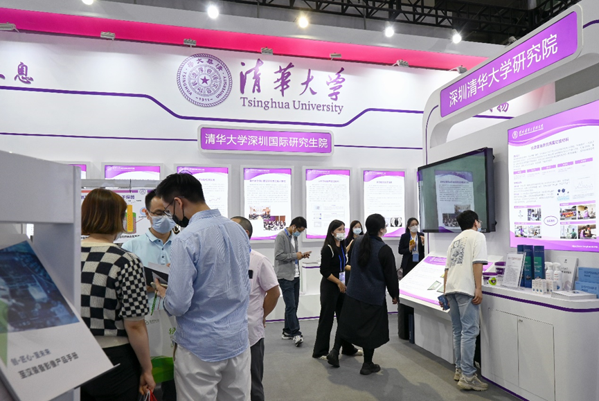 清华大学、清华大学深圳国际研究生院、深圳清华大学研究院、深圳市力合科创股份有限公司(以下简称“力合科创”)组成清华大学展团,展位位于9号创新与科研展区。深圳市原副市长陈彪,清华大学深圳国际研究生院副院长马岚,深圳清华大学研究院院长嵇世山、常务副院长刘伟强,力合科创总经理贺臻等参观了清华大学展区。
