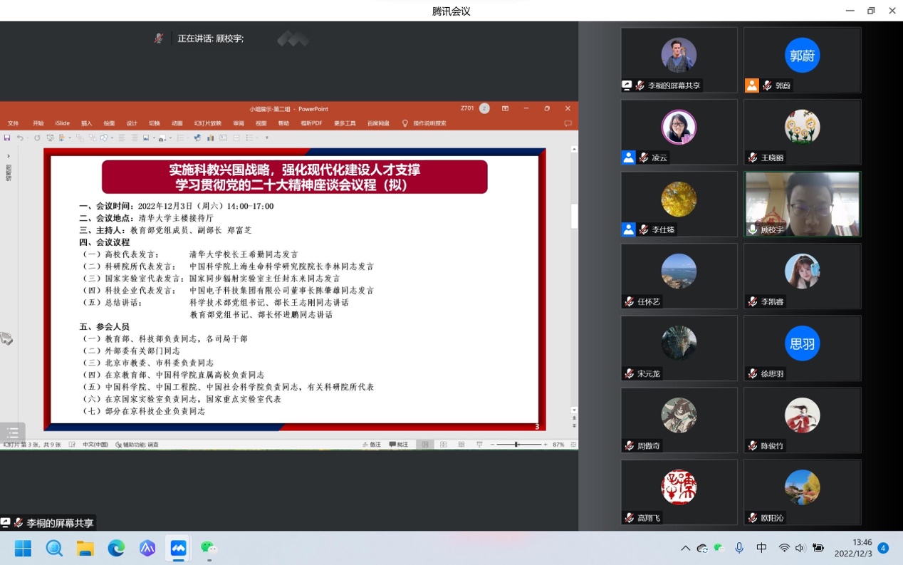 12月3日,清华大学校机关第三期文稿写作实训班在线上举行结业式。校机关党委常务副书记、校党委组织部副部长欧阳沁,政策研究室主任孙海涛等出席结业式。结业式由政策研究室副主任凌云主持。