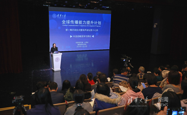 清华新闻网11月14日电(记者 郭莉莉 摄影 曹文鹏 宋伟)11月13日下午,清华职员“全球传播能力提升计划”第一期开班仪式暨荷声讲坛第十七讲在蒙民伟楼多功能厅举行。清华大学党委宣传部常务副部长、新闻中心主任覃川出席开班仪式并致辞。清华大学国际关系研究院院长阎学通教授作题为“中美战略竞争与舆论”的专题讲座。人事处副处长王晓莉、继续教育学院党委副书记张文雪出席开班仪式。全球传播办公室主任陈垦主持开班仪式及讲座。