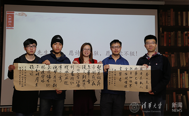 在场师生进行了深入交流。清华荷塘诗社成员肖红缨,清华校友萧云子、高士元点评了学生的诗作。王步高先生的学生宋勰瑞、魏均宇与大家分享了自己的诗作,并从多个角度畅谈对王步高先生道德文章的感受与认识。随后,学生书法协会代表向分享者赠送书法作品。
