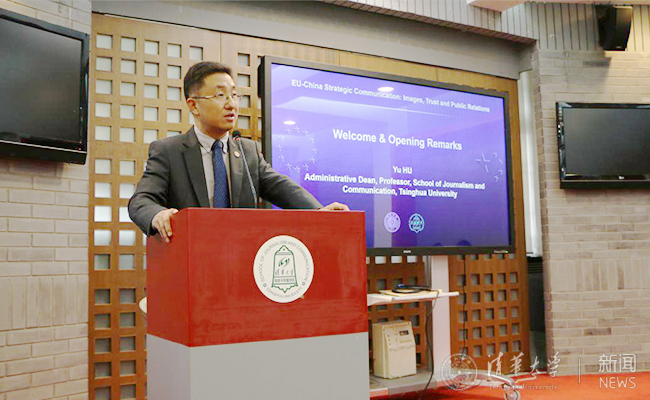 清华大学新闻与传播学院党委书记胡钰教授,欧盟驻华使团新闻与信息部主管William Fingleton先生出席并致开幕辞。