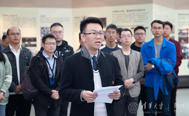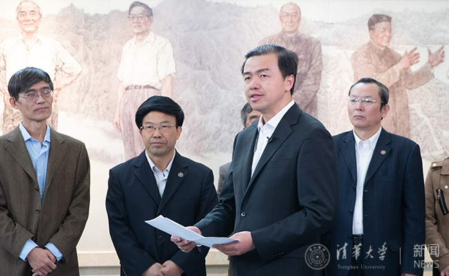 校史馆馆长、档案馆馆长范宝龙在致辞中向师生们讲述了《以身许国图》的由来,讲述了王淦昌院士当年放弃原有研究方向、参与和领导原子弹研制时的名言“愿以身许国”的故事。范宝龙表示,本次展览借用这句话作为主题,向所有为“两弹一星”研制和我国核事业发展作出贡献的前辈们致以崇高的敬意。范宝龙介绍,本次展览是清华大学校史馆、档案馆、图书馆三馆联合举办的展览,是在正在进行的“不忘初心,牢记使命”主题教育过程中形成的创意,也是将学习教育与实际工作结合的尝试。希望更多老师和同学到校史馆参观展览,通过展览,激励全校广大师生学习和弘扬“两弹一星”精神,为学校的建设发展,为国家的繁荣富强作出更大的贡献。