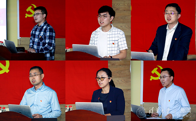 党员代表发言。从上到下、从左到右依次为:尹宇辉、张海翔、张传杰、汪晖、肖茜、邹楠