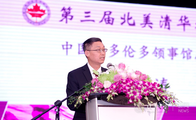 大会特邀嘉宾、中国驻多伦多领事馆总领事韩涛到会致辞,简要介绍了南安省在教育、经济、创新等方面的情况,特别是当地清华校友和校友会在其中的重要贡献。
