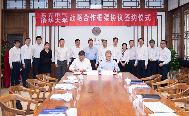 清华新闻网9月20日电(记者 吕婷 摄影 李派)9月19日下午,清华大学与中国东方电气集团有限公司(以下简称“东方电气”)战略合作框架协议签约仪式在工字厅举行。清华大学校长邱勇、副校长尤政,东方电气党组书记、董事长邹磊,党组成员、副总经理徐鹏等出席仪式。尤政与徐鹏代表双方签署战略合作框架协议。