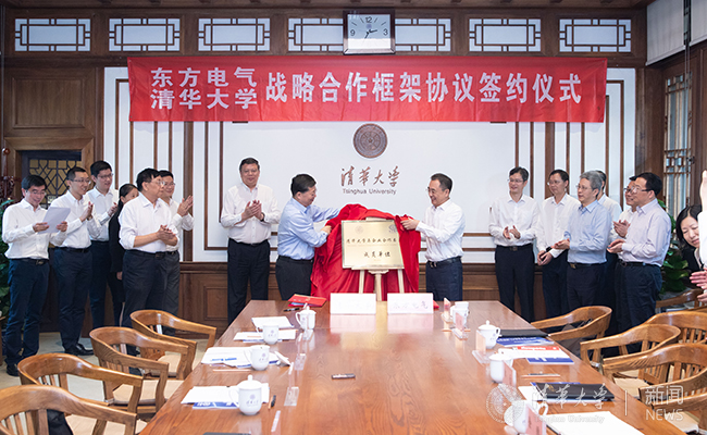双方共同为东方电气成为清华大学企业合作委员会成员单位揭牌
