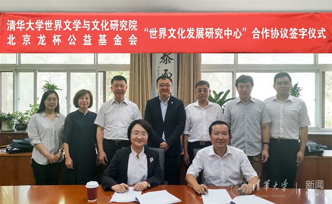 清华新闻网7月15日电 7月12日下午,清华大学世界文学与文化研究院在清华大学文南楼举行了世文院与北京龙杯公益基金会“世界文化发展研究中心”合作协议签字仪式。清华大学副校长、教务长、教育基金会理事长杨斌,清华大学世界文学与文化研究院院长颜海平,清华大学全球共同发展研究院秘书长曾劲松,北京龙杯公益基金发起人尹雄,北京新康公益基金会发起人李天琪出席仪式。