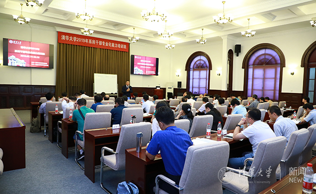 清华新闻网6月18日电 为深入学习贯彻习近平新时代中国特色社会主义思想和党的十九大精神,贯彻落实习近平总书记对干部队伍建设提出的新要求,加强复合型人才培养,提高院(系)中层干部队伍的高素质专业化能力,为学校实现建设世界一流大学的目标作出更大的贡献,6月14-15日,由校党委组织部主办,继续教育学院协办的“清华大学2019年系所干部专业化能力培训班”在第二教学楼举行,校党委常务副书记姜胜耀作总结讲话,副校长杨斌作报告,校党委常委、组织部部长、统战部部长许庆红在开班动员中作了情况介绍,来自28个院系的55位系所干部教师参加了学习,培训班由校党委组织部副部长徐明星主持。