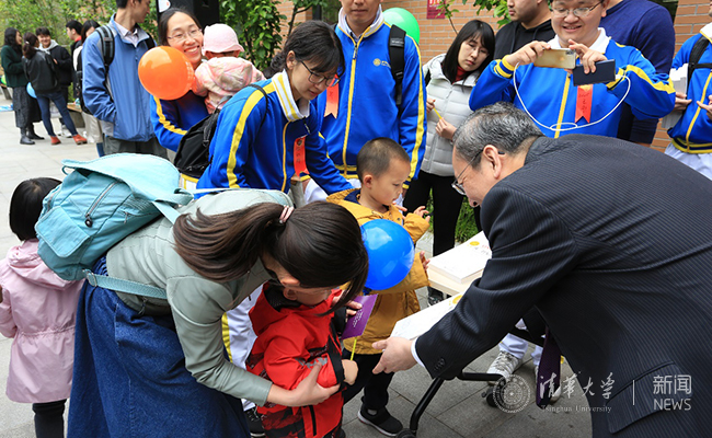 为传递清华力量和图强精神,图书馆和2005级校友选择了《从一到无穷大》一书送给到场的清华校友家庭中的小朋友们。王有强给每本书签名并写赠语—“清华图强,吾正逢时”。赠书结束后,全体嘉宾、校友和小朋友们合影留恋。随后,部分校友跟随图书馆员,参观馆舍和馆藏,了解图书馆的最新发展,为学校的未来送上深深祝福。