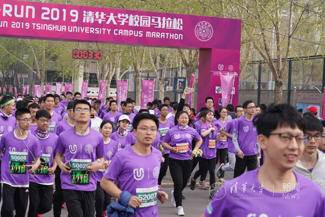 清华新闻网4月13日电(通讯员 李凤敏 摄影 钟汉麟 王烁祺 彭瑞轩)4月13日上午9时,由清华大学体育运动委员会主办、体育部和校团委共同承办的“2018-2019学年度清华大学马约翰杯校园马拉松赛”火热开赛。三千余名清华师生、校友秉承“自强不息,厚德载物”的校训和“为祖国健康工作五十年”的信念,共跑四月阳光明媚的清华园。