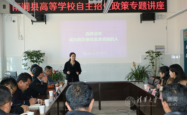 招办副主任杨帆向南涧县各高中校长和教师介绍了清华大学针对农村贫困地区的专项招生计划。“3月底4月初,我们就会公布‘自强计划’的招生简章,希望各位校长和老师积极鼓励同学们报名,我们的报名和测试均不收取任何费用,如因家庭经济原因参加测试存在困难的,可以向我们申请资助。”杨帆说。