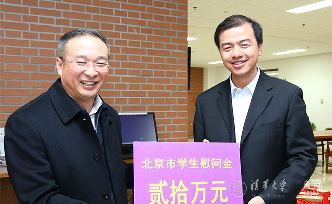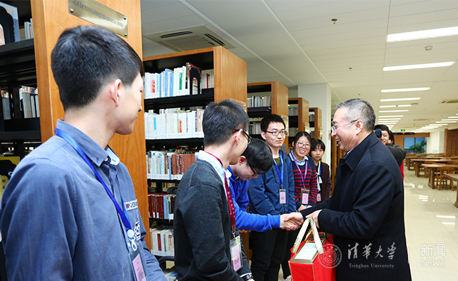 张家明在现场与同学们亲切交流。他回忆起自己在清华求学时的经历,表示从清华重视劳动和实践的宝贵传统中受益颇深,勉励图书馆勤工助学分队的学生们从小事做起,积极参加劳动和实践,锻炼全面素质,为以后走上工作岗位、为国家作出贡献打好基础。最后,他代表北京市向清华赠送了学生慰问金,向波涛代表学校接受慰问金。张家明还为勤工助学大队的同学们送上了节日慰问品和新春祝福。